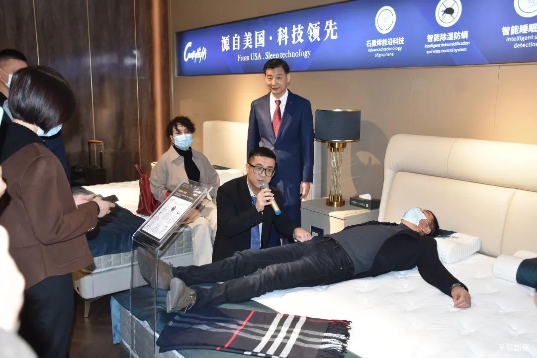 嘉賓們紛紛現(xiàn)場(chǎng)體驗(yàn)夢(mèng)凱莎床墊的科技睡感。