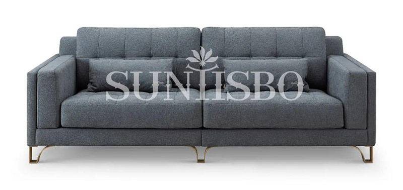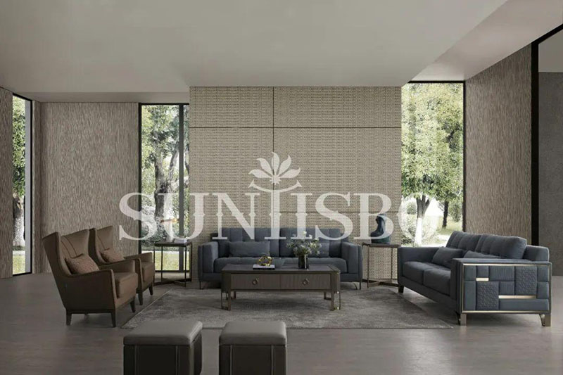沙發(fā)采用細(xì)膩的顆粒感皮料,不僅增加了霧霾藍(lán)色彩的飽和度,也在視覺(jué)上充實(shí)了空間的安全感。輪廓,扶手皆為干練利落的直線(xiàn),放眼望去不僅簡(jiǎn)化了空間,也傳達(dá)著對(duì)精簡(jiǎn)生活的追求。