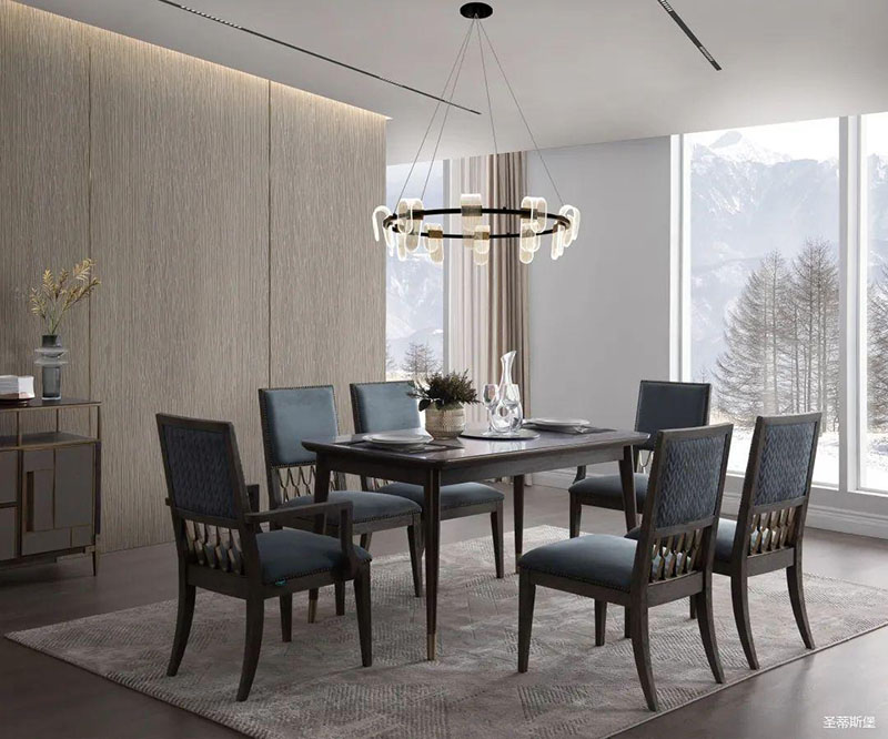 餐桌的天然材質經過時間的沉淀,散發著生生不息的自然生命力,它的紋理與質感展現著尊貴奢華的藝術氣息。“藝術的偉大意義,基于它能顯示人的真正感情,內心生活的奧秘和熱情的世界。”而這款融合自然藝術與實木雕刻工藝的餐桌,不僅表達了羅曼·羅蘭對于生活與感情的理解,也讓你在居家生活中處處體驗到生活的真諦。