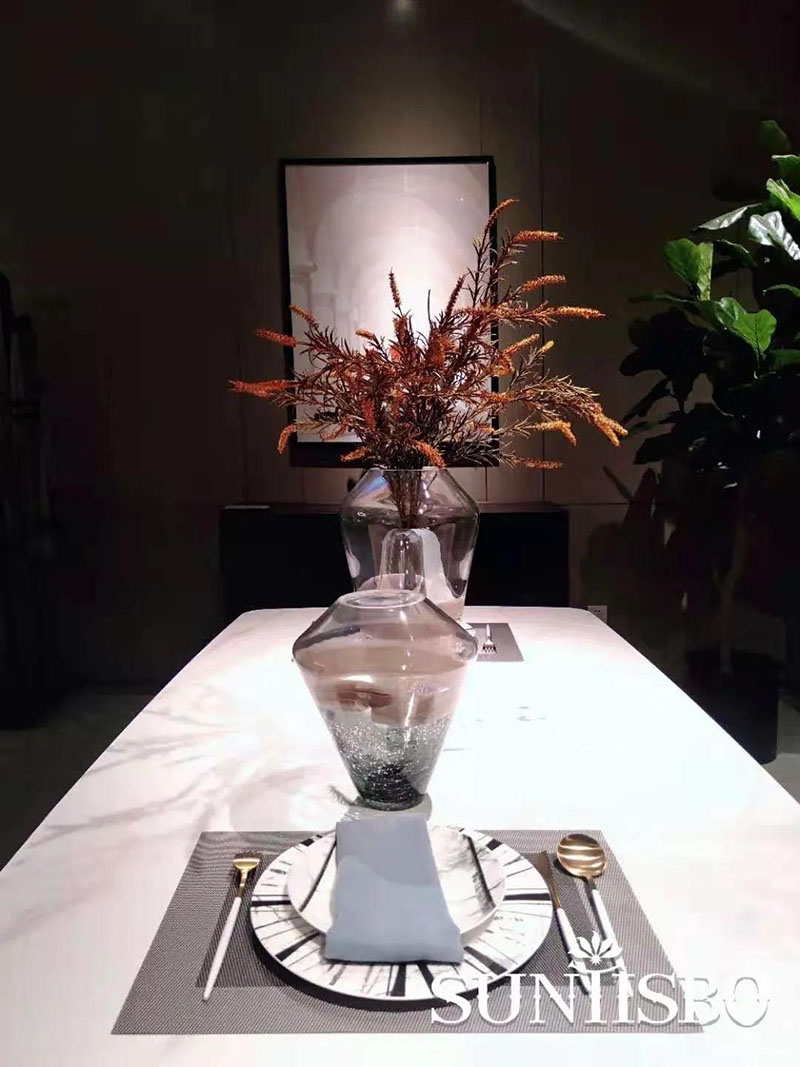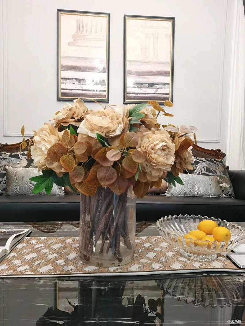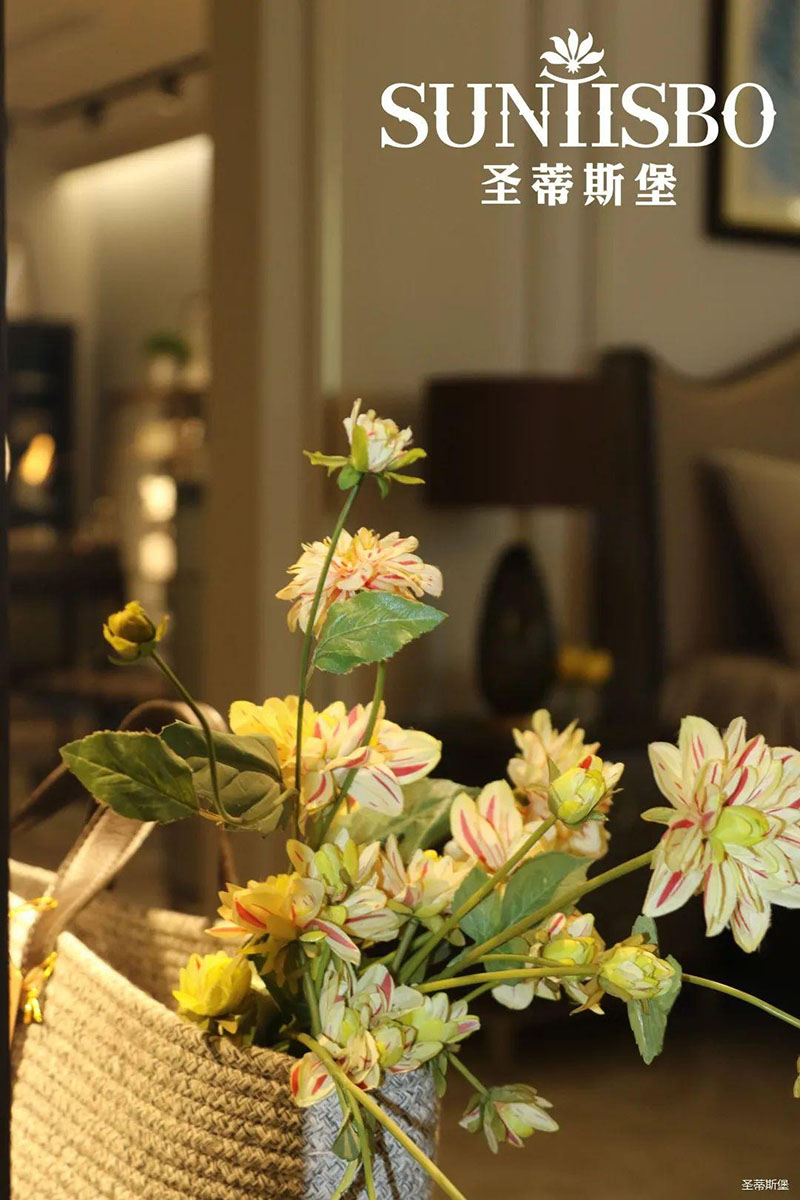 3.輕奢的配飾也需邀來似錦繁花相稱。色彩跳脫的植物更為亮眼,讓自然界的色彩與姿態(tài)應和空間之間的協(xié)調,傳遞空間與情感的共鳴。