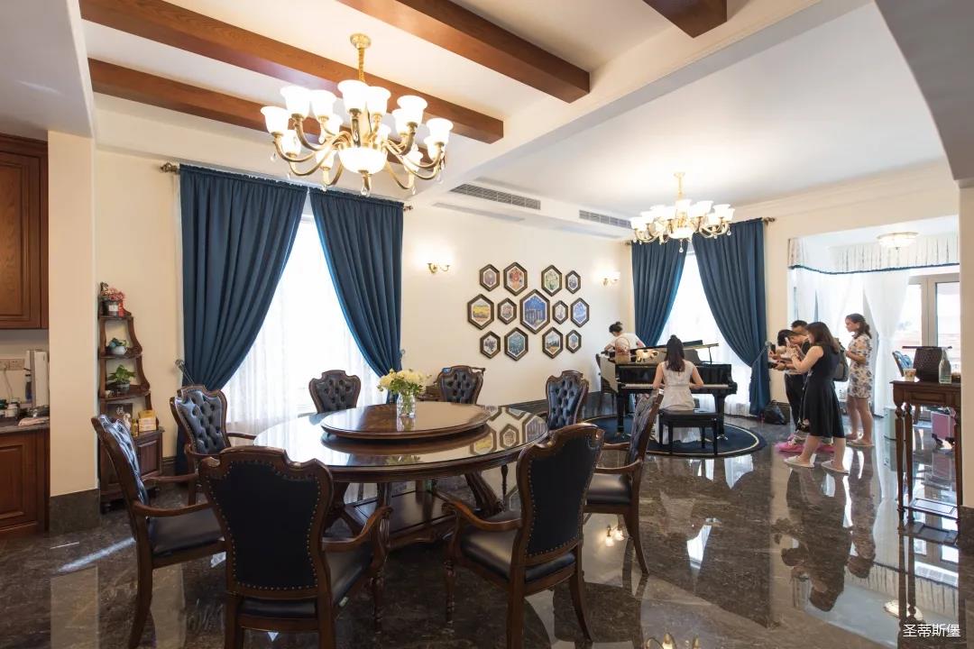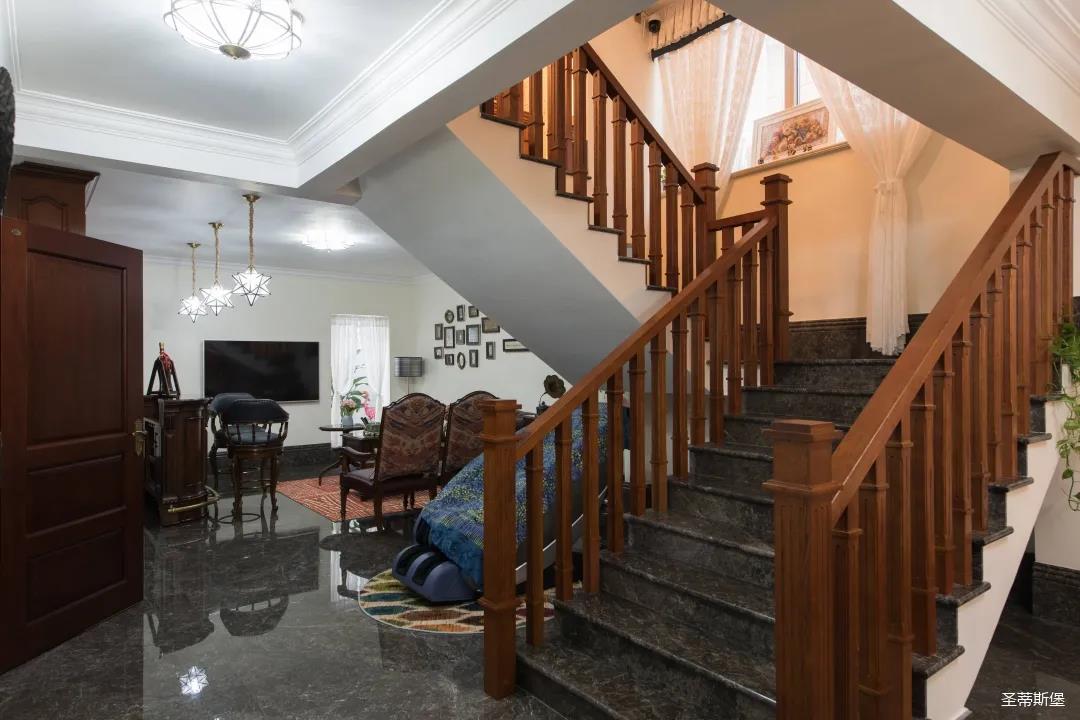 設計師根據業(yè)主喜好的風格進行設計,同時考慮了家庭成員不同的年齡層次,分別進行了不同氛圍的營造,通過旋轉樓梯進行空間貫穿,將不同空間的格調與氛圍聯(lián)系起來,達到和諧統(tǒng)一的效果。
