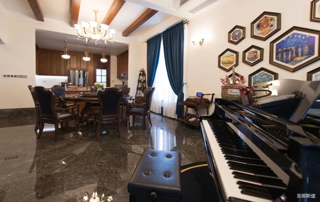 餐廳視線末端是一架鋼琴,與窗外景色相結合,擴大了視野,制造出移步易景的生活體驗。