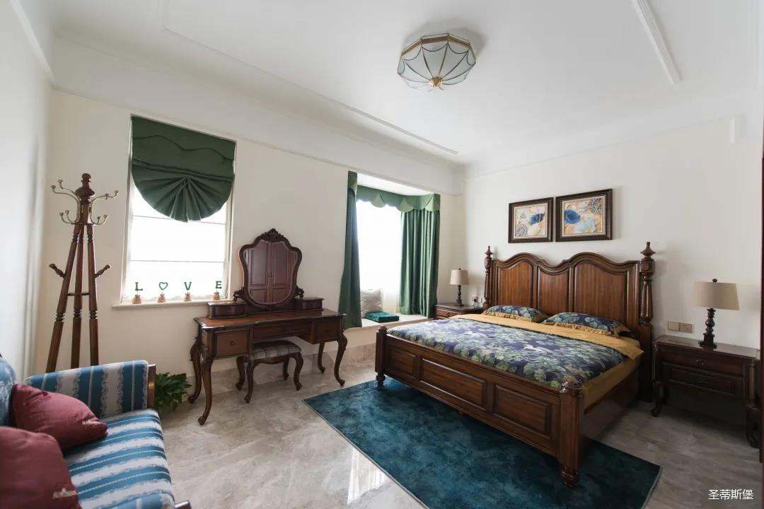 結合業(yè)主的需求,精簡打造客房,秉承了古典主義和諧對稱的原則。在中性復古的色彩中,調和出溫馨懷舊的味道。家具精雕細琢的品質,令空間沉浸在古典的氛圍里,讓居家生活親切而有靈魂!
