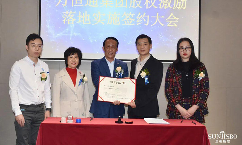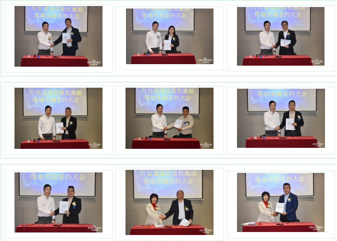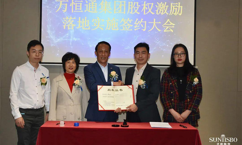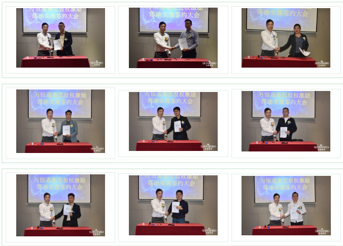 必一通集團執行董事及法人代表王浩基先生正式為第一期六位虛擬受限股股東授予榮譽證書并簽訂股權分配協議。