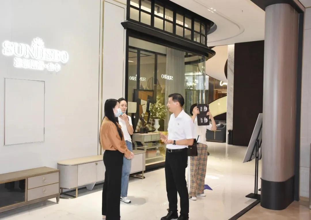 展會期間,全國家居建材連鎖巨頭—紅星美凱龍集團鄭總一行蒞臨必一運動營銷中心進行參觀交流。集團領導熱情接待,雙方進行了深度洽談,并一起參觀了洛斯、里奧、洛卡等展廳。