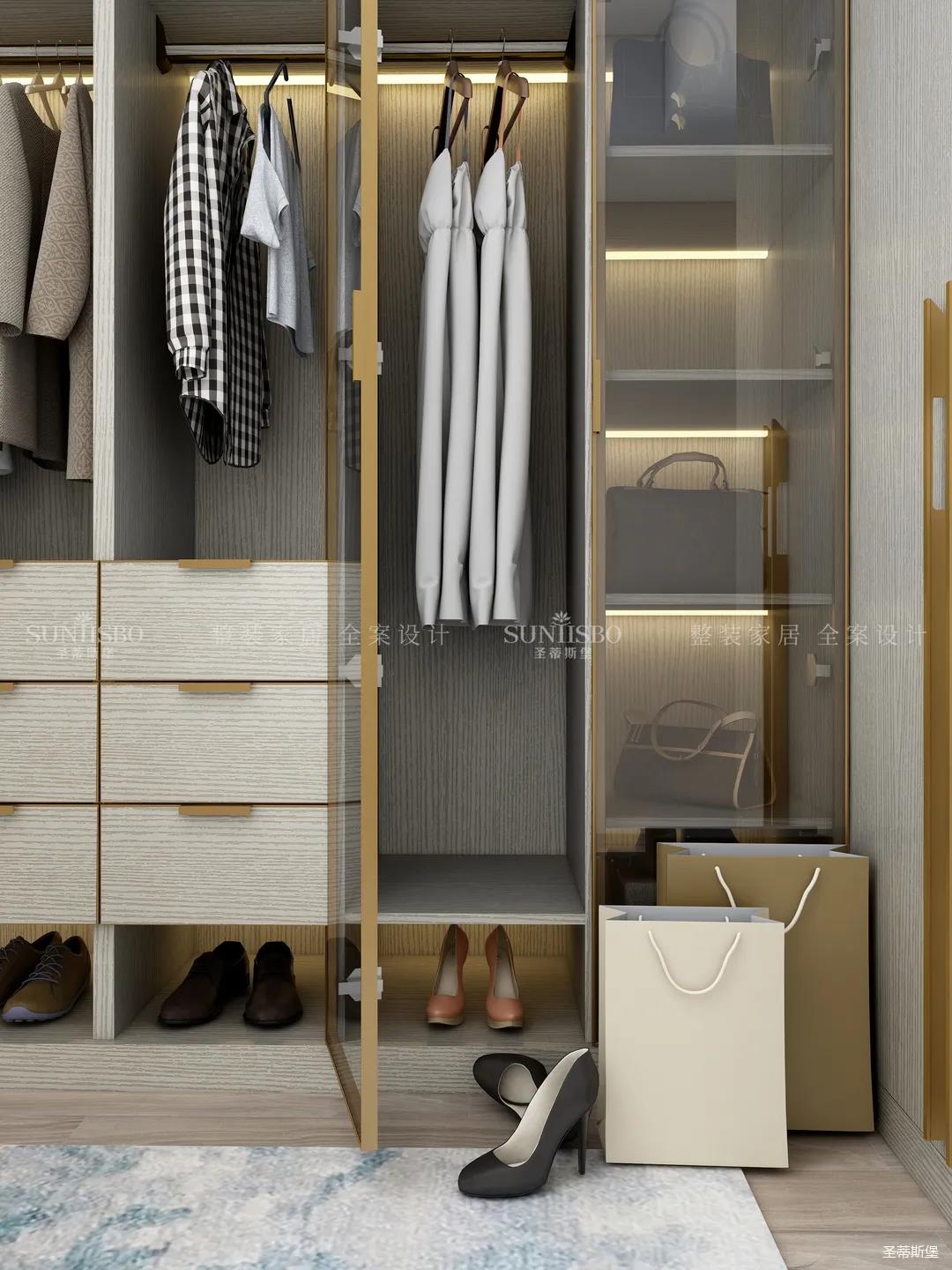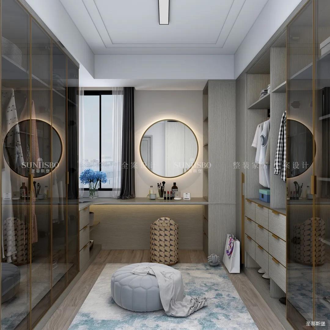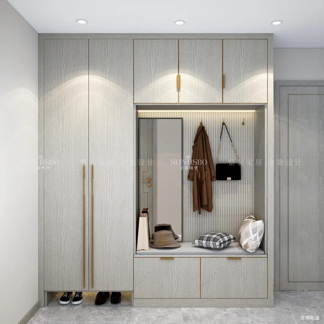 進入玄關區(qū)域就能感受到房主對時尚風格的偏愛,實木元素與簡奢金屬的碰撞,既有對材質的甄選,又有現(xiàn)代簡奢的品質感。穿衣鏡、換鞋凳、收納柜等藏漏有序的分區(qū),將屋主的生活歸納的井井有條。