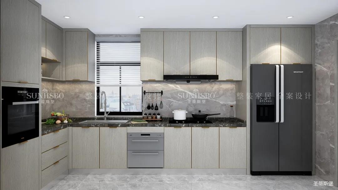 廚房餐邊柜的設計不遺余力的表達了收納充足藏而不漏,空間經過設計斟酌,將木元素作為空間主流,柜體上最能體現(xiàn)質感的歲月紋理,既是工藝升級的表現(xiàn),又是時尚的標志。
